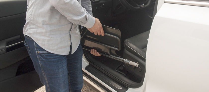 手動式ティップアッププレートは、車椅子から車両座席への移乗、また、その逆の移乗を容易にします:車両座席と車椅子の間を連携するブリッジをつくり、車両の乗降を容易にします。